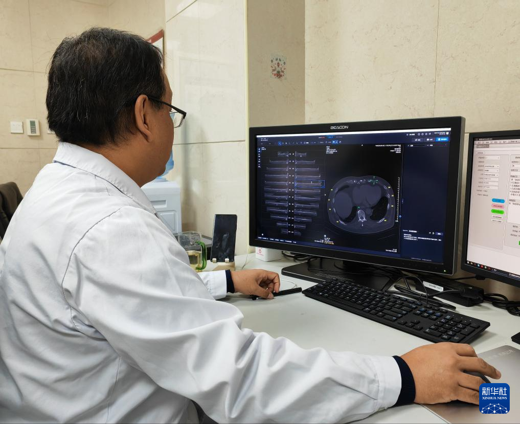银川市第一人民医院医生使用人工智能辅助诊断系统阅片(2024年10月25日摄)。新华社记者 任玮 摄