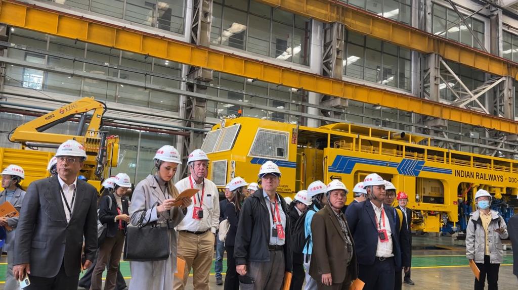 11月19日,外宾在中国铁建高新装备股份有限公司的国家铁路大型养路机械工程技术研究中心参观。新华社记者 赵彩琳 摄