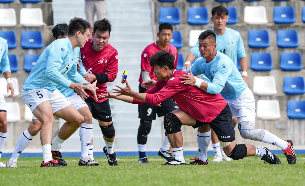 11月25日,北京队选手与宁夏队选手在第十二届全国少数民族传统体育运动会花炮项目比赛中拼抢。新华社记者 晋美多吉 摄