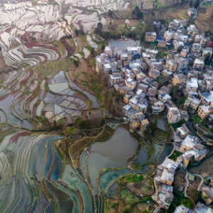 近日,位于云南省红河哈尼族彝族自治州元阳县的哈尼梯田迎来了最佳观赏期,梯田旁的阿者科村也吸引了更多游客前来“打卡”。