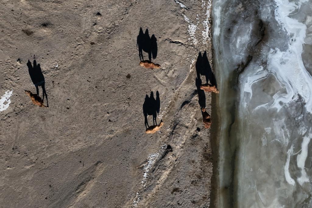 11月27日,在青海省海西蒙古族藏族自治州乌兰县,几只骆驼正在休憩(无人机照片)。新华社记者 张龙 摄