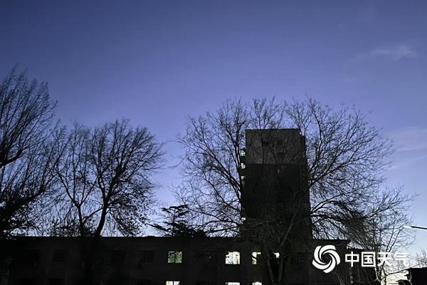 今天早晨,北京天气晴朗,大风呼啸。(图/中国天气网梁杰)