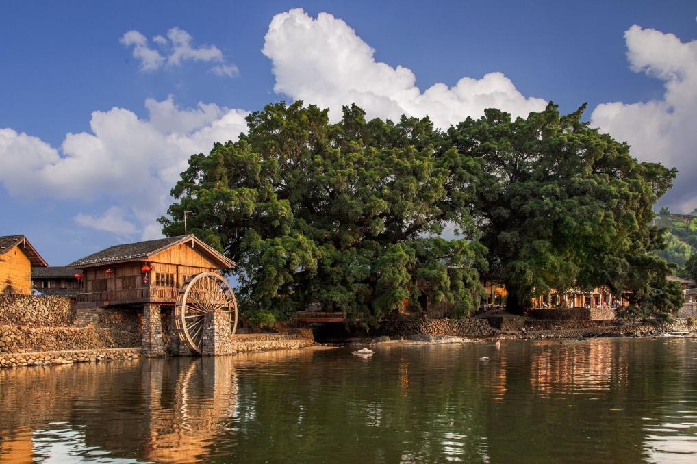新华社福州11月29日电(记者黄景鸿)一条溪、几株榕树、一条鹅卵石古道,走进福建南靖官洋村,秀美乡村画卷跃然眼前。沿溪而行,但见流水击石,泠泠作响,溪旁百年老榕状如华盖,巍巍乎欲遮天,古道上游人如织,时有孩童嬉闹声。放眼望去,山翠拂人衣,一派世外桃源般的秀丽风光。