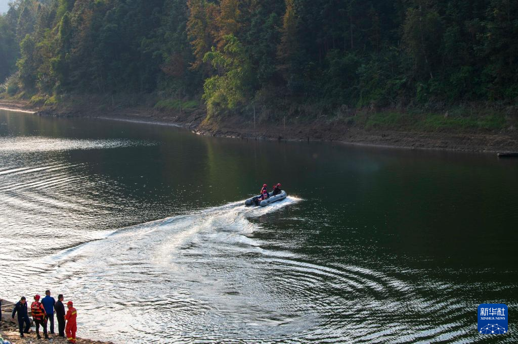12月2日拍摄的贵州省从江县境内的都柳江支系平正河翻船事故现场。新华社发