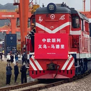 11月18日,一趟满载110标准箱出口货物的中欧班列从义乌西站驶出,开往西班牙马德里。当天,义乌中欧班列开行满十周年,十年来,“钢铁驼队”驰而不息,累计开行逾6700列,发运超67万标准箱,为经贸往来、民心相通注入源源不断的动力。