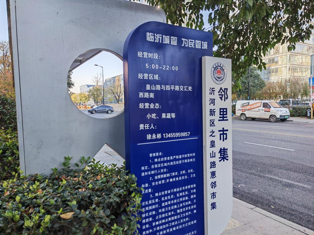 这是在临沂市沂河新区皇山路设置的“邻里市集”标示牌。新华社记者 刘铮 摄