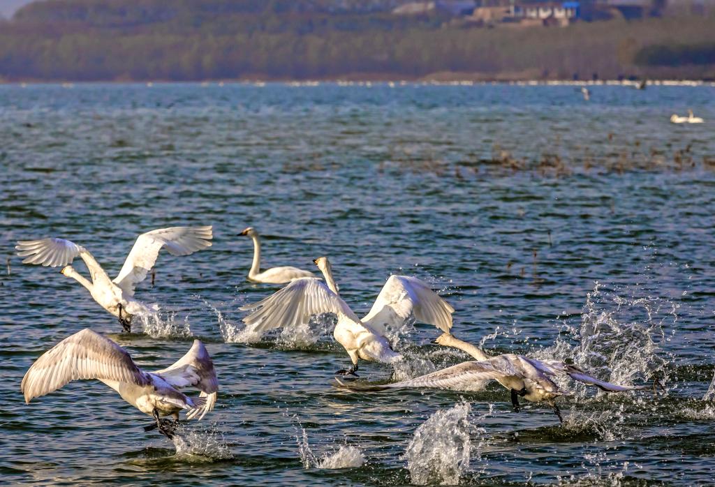 占地6000多公顷的山西平陆黄河湿地位于山西、河南两省交界处,这里气候温和、采食丰富,非常适宜白天鹅越冬,是我国白天鹅越冬的重要栖息地之一。近年来,随着平陆黄河湿地生态环境不断改善,每年到此越冬的白天鹅数量在1万只左右。