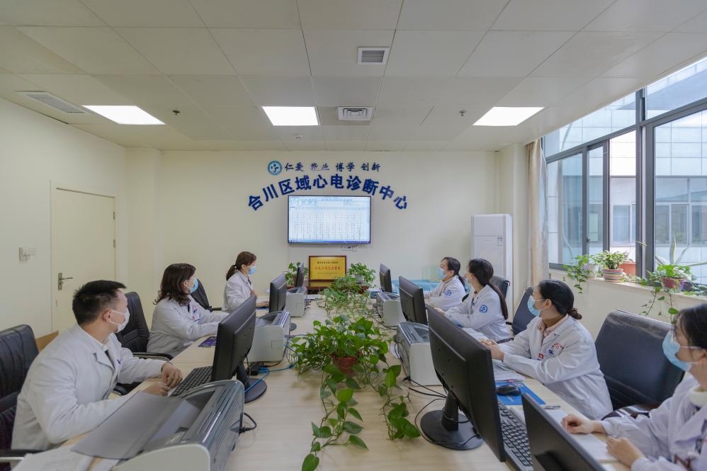 在重庆合川区域心电诊断中心,医务人员正在解读报告。(杨益 摄)