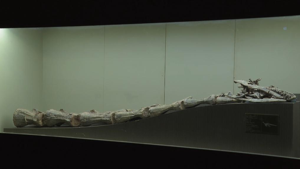 在禄丰恐龙谷大遗址馆内展览的王氏栗树龙化石标本。(受访单位供图)