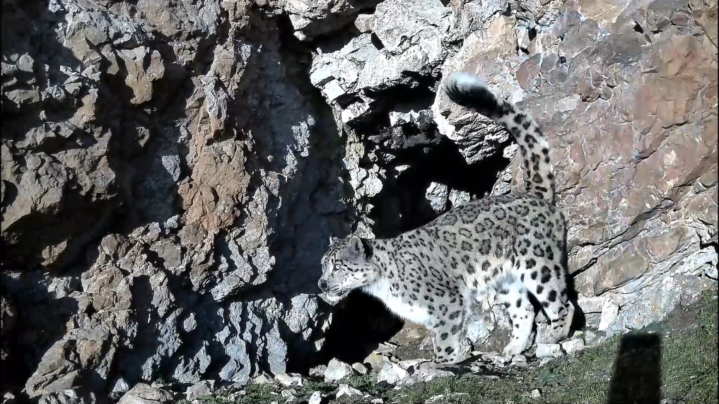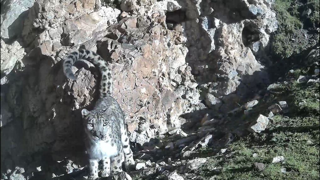 在这些珍贵的录像片段中,一个身影频繁出现——一只脸上带有明显伤痕的雪豹。据保护区管护中心的工作人员介绍,这只雪豹身形矫健、线条流畅、力量感十足,因在今年上半年的一次捕食过程中不慎划伤脸部,而被工作人员称为“刀疤脸”。