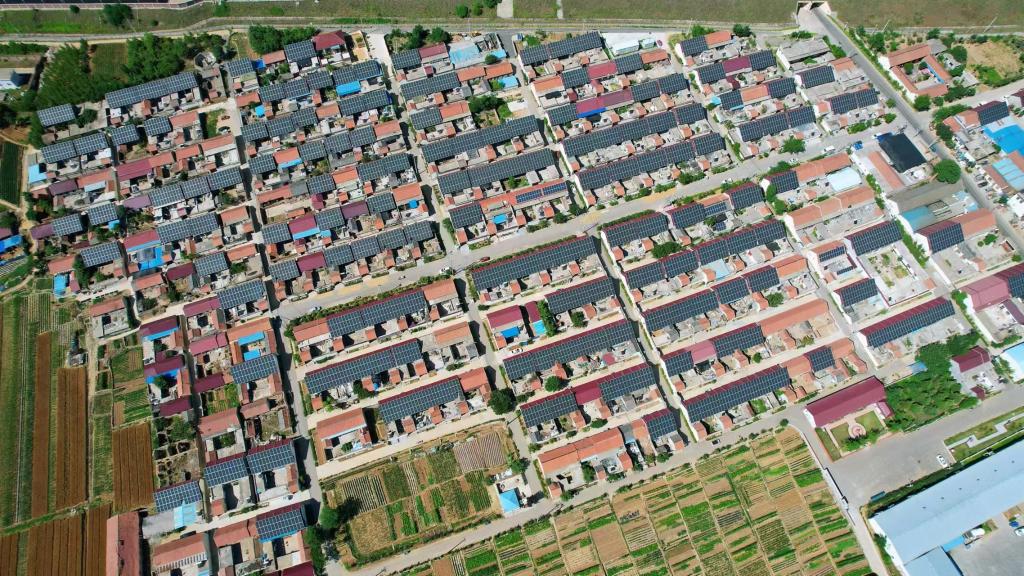 冬日的沂蒙山区,天气晴好。走进山东省临沂市沂水县黄山铺镇寺前官庄村,村里七成以上民房屋顶装有光伏板,迎着阳光闪闪发亮,将太阳能转化为绿色电能。