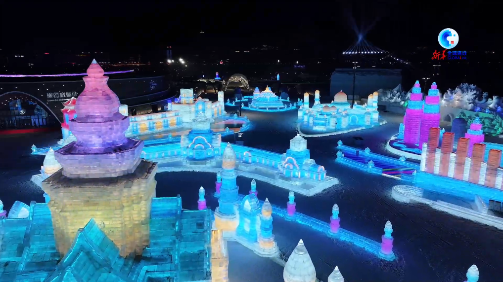 恰逢第九届哈尔滨亚冬会即将举办,园区以“冰雪同梦 亚洲同心”为主题,将亚奥理事会成员的地标景观以冰雪形式呈现。中国的天坛、日本的大阪城、韩国的崇礼门、蒙古国的国家宫、印度的泰姬陵、新加坡的鱼尾狮……这些独具匠心的冰雕建筑,白天晶莹剔透,夜晚流光溢彩,让游客足不出园游亚洲。