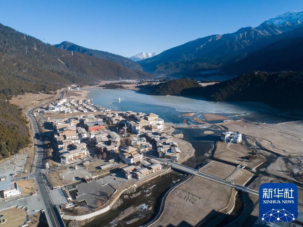 2024年12月17日拍摄的川藏公路旁的西藏林芝市鲁朗国际旅游小镇风光(无人机照片)。新华社记者 丁汀 摄