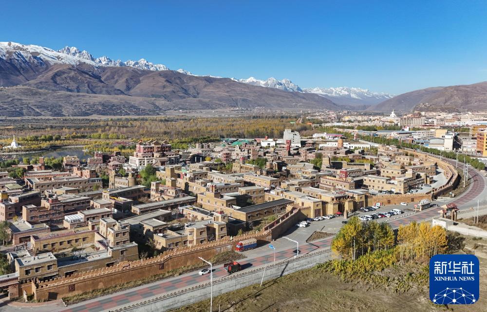 这是2024年10月29日在四川省甘孜藏族自治州拍摄的国道317公路,路边是甘孜县格萨尔王城景区(无人机照片)。新华社记者 王曦 摄
