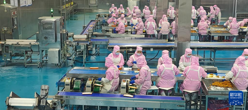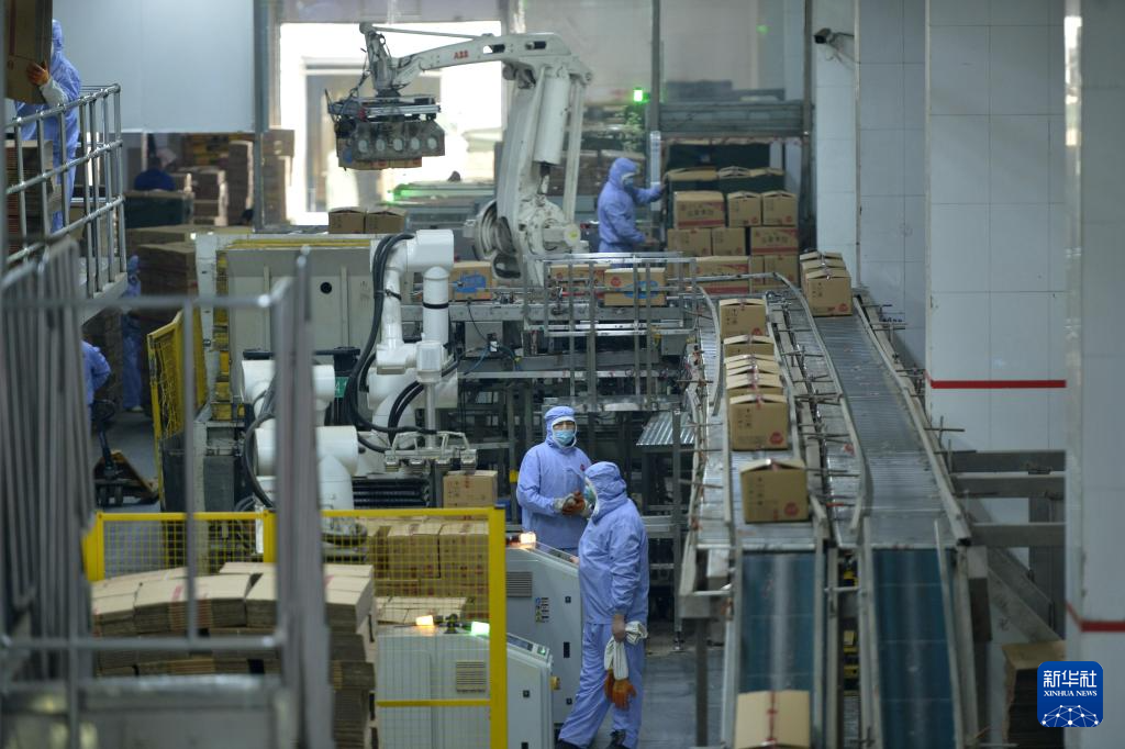 12月26日,工人在河南漯河的河南御江食品股份有限公司的生产线上工作。新华社记者 刘力航 摄