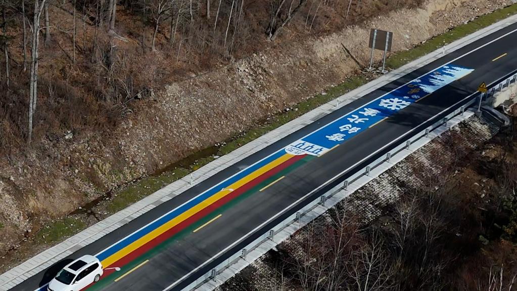 元旦前夕,来自河南的魏先生乘车从哈尔滨前往亚布力滑雪旅游度假区。途中,一块印着“塞北的雪”和洁白雪花的指示牌吸引了他的注意。没一会儿,公路变成红黄蓝绿相间的彩色路面,耳边传来熟悉的钢琴旋律《我爱你,塞北的雪》,令他和同伴感到惊喜:“没想到公路也会‘唱歌’!”