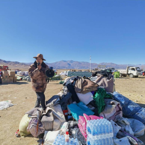 地震发生后,村民急需防寒帐篷、火炉等物品。新一批物资快到前,达娃在村委会门口等候。车一停稳,他立即指挥几个青壮年跳上去,一件件往下卸,再依次分发。