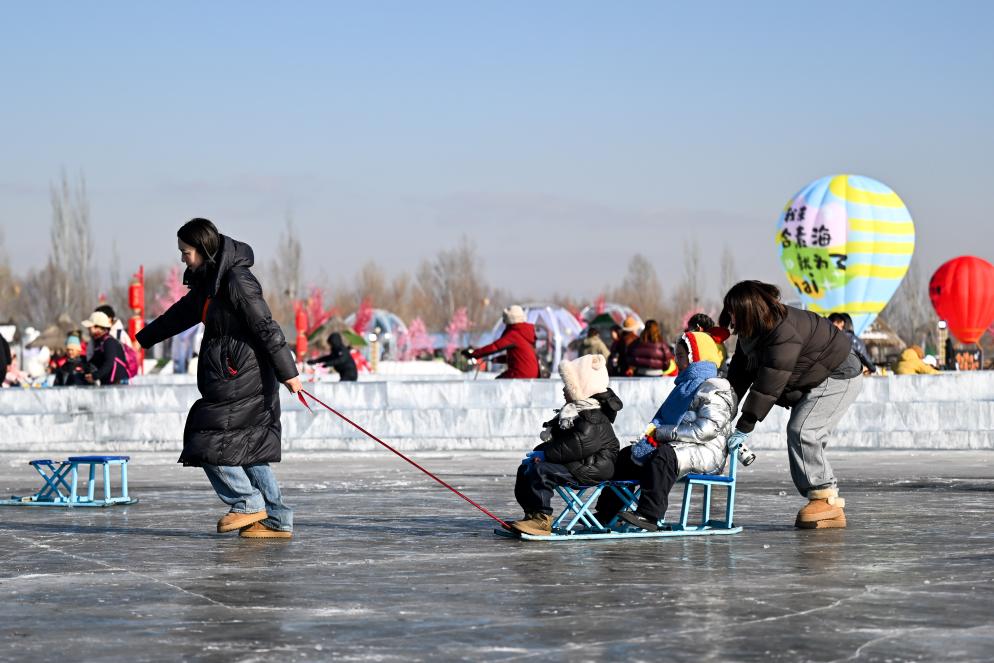 1月10日,游客在哈素海旅游景区玩冰车。新华社记者 李志鹏 摄