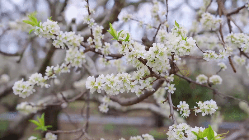 清风徐来,花瓣带着幽香“翩翩飞舞”,为人们营造出“远水同春色,繁花胜雪天”的美好意境。
