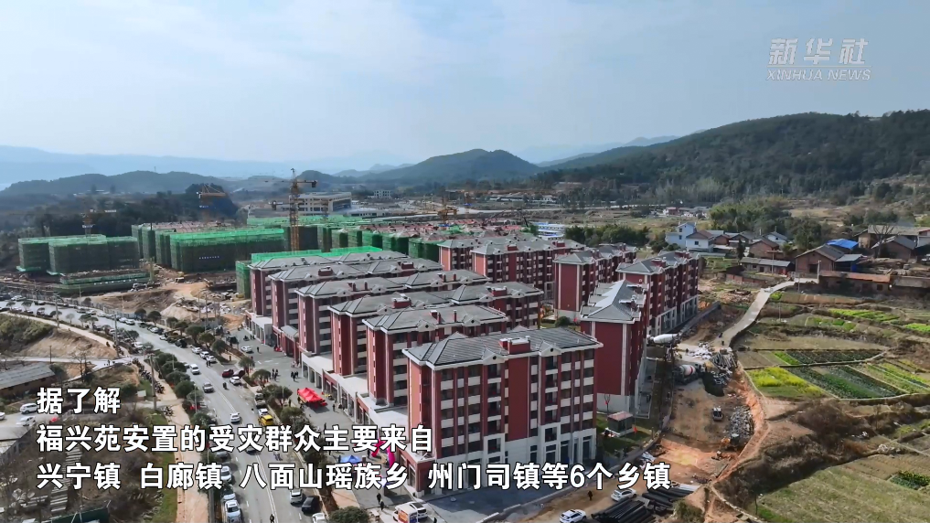 1月18日,在阵阵鞭炮声中,湖南省资兴市规模最大、安置人口最多的集中安置点福兴苑正式揭牌,受灾群众陆续搬进新家迎接新年。