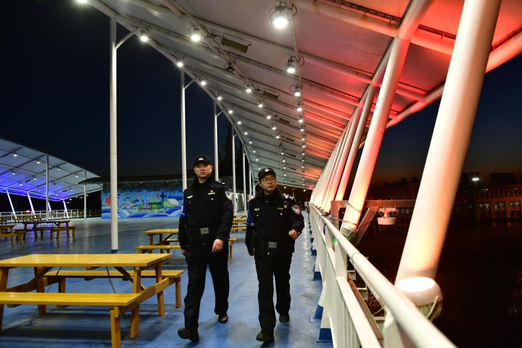 夜已深,船上的热闹逐渐归于平静。不少乘客已经进入梦乡,乘警们仍在客舱和外甲板等重点区域巡逻。风火无情,大风和火种是船上的主要风险点。在海上经常会遇到“推背感”很强的海风,这时候,乘警会提醒旅客们离开甲板,以免出现意外。