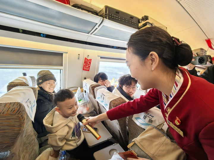 看到铁路工作者们的用心与真情,不少乘客纷纷为这场小年联欢会点赞。“这是我第一次在列车上过小年,感觉很新鲜。列车上的节目和互动让我感受到了浓浓的年味儿。”来自河北邯郸的乘客李彤说。