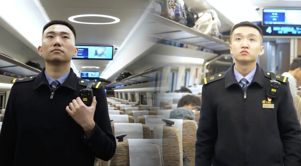 2025年春运期间,他们俩的工作是担当蓉港高铁值乘工作,负责对列车进行巡视,检查车窗、车内客服设施、消防、电气等设备运行状态,确保动车组运行安全。