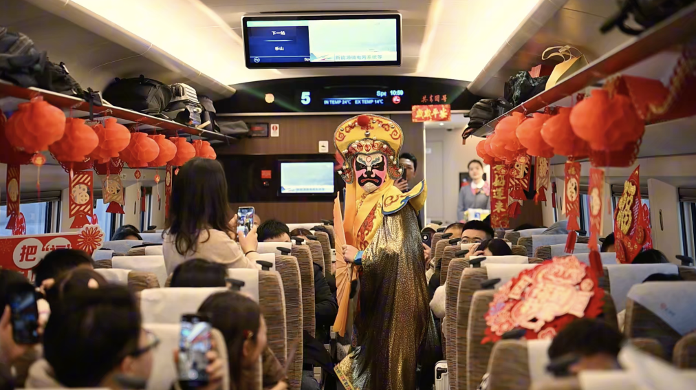 1月23日,G2963次蓉港高铁上充满浓浓年味。新华社发