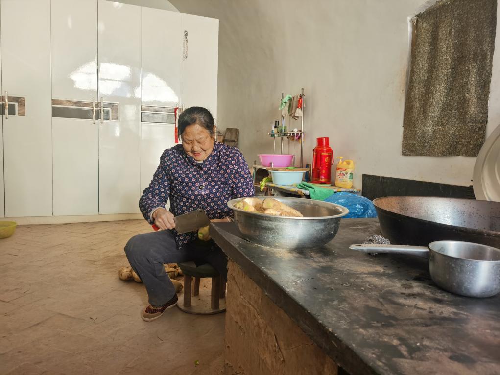 灶台上,从地窖里拿出来的萝卜装了满满一盆,正准备做饺子馅。白张梅说:“过年了,就要吃羊肉萝卜馅儿的饺子!”