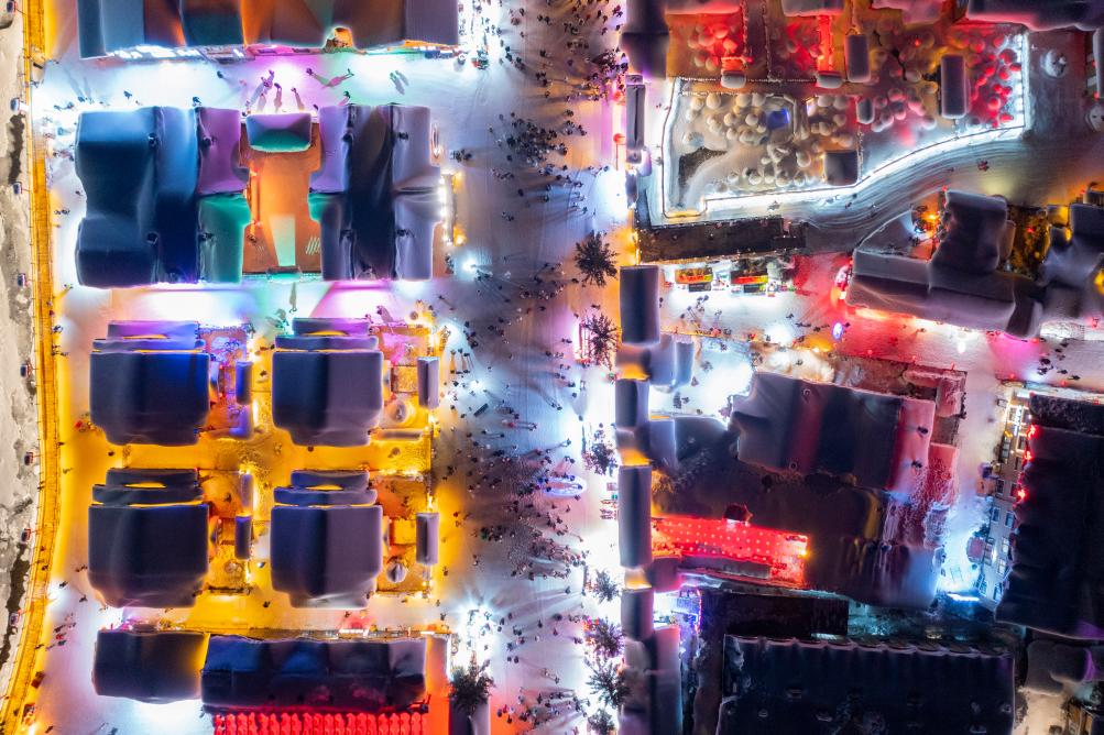 游客在雪乡游玩(无人机照片)。新华社记者 谢剑飞 摄