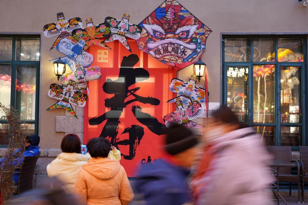 1月31日,游人在山东省青岛市市北区大鲍岛文化休闲街区游玩。新华社发(杜春来 摄)