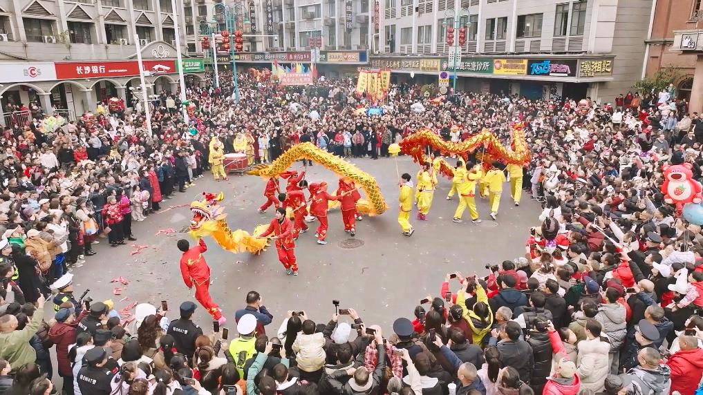 这是洪江古商城“洪福洪江年”龙腾古城活动现场。(张卓 摄)