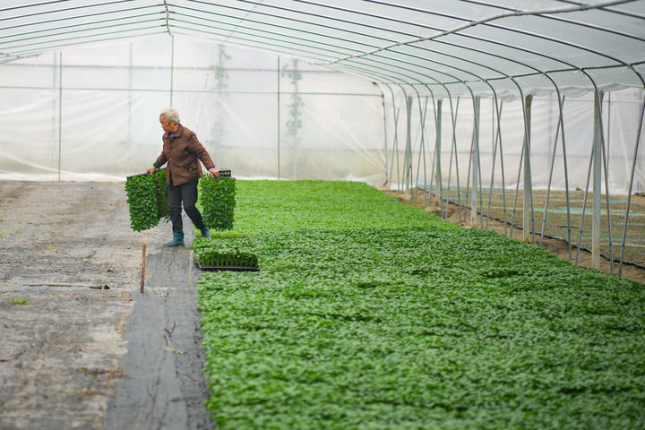 2024年12月11日,在湖南省郴州市桂东县一家生态农业公司,村民在搬运蔬菜。新华每日电讯记者 陈泽国 摄
