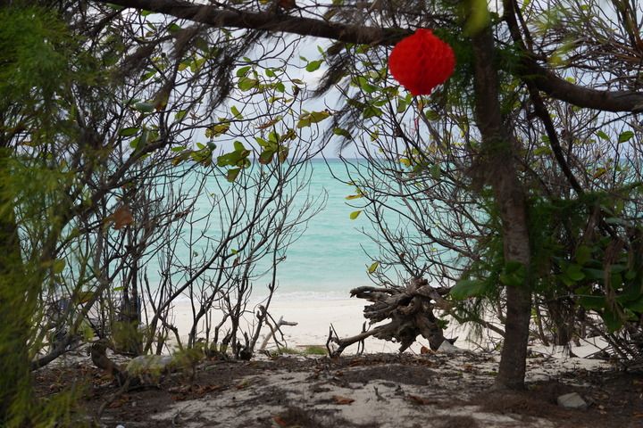 岛上植被繁茂,海鸟流连忘返,海浪与沙滩荡漾出人类依恋大海的美好情绪。当望见红色灯笼点缀在海滩边的树丛中,我恍惚间突然意识到,先民早已在这片海上仙境世代居住。