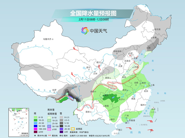 后天,内蒙古东北部、东北地区大部、西藏东部、甘肃南部、西北地区东部、华北北部、黄淮北部、川西高原、重庆东北部、云南西北部等地部分地区有小到中雪或雨夹雪,其中,西藏东部、云南西北部等地部分地区有大到暴雪。黄淮南部、江淮、江汉大部、江南北部和西部、西南地区东部、华南中北部和南部、台湾岛大部等地部分地区有小到中雨,其中,西藏东南部、湖南西部等地部分地区有大雨。