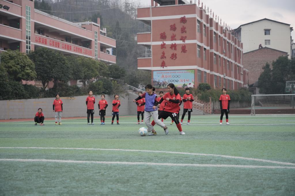 躬身蓄势,奋力一踢,当球“飞”入球门,操场上响起阵阵欢呼声。春寒料峭,重庆市石柱土家族自治县三河小学女子足球队进入了“集训时间”。