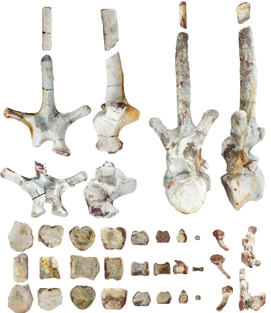 图为四会赖氏龙类恐龙化石标本的背椎和尾椎。(受访者供图)