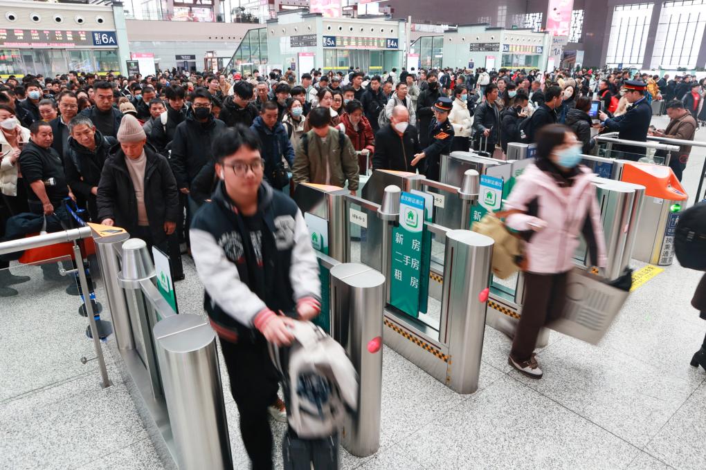 正月十六,在长三角地区重要站点合肥站,大红灯笼、精美窗花烘托出浓浓的新春气氛。候车大厅里熙熙攘攘,人们背起行囊奔赴新年梦想。