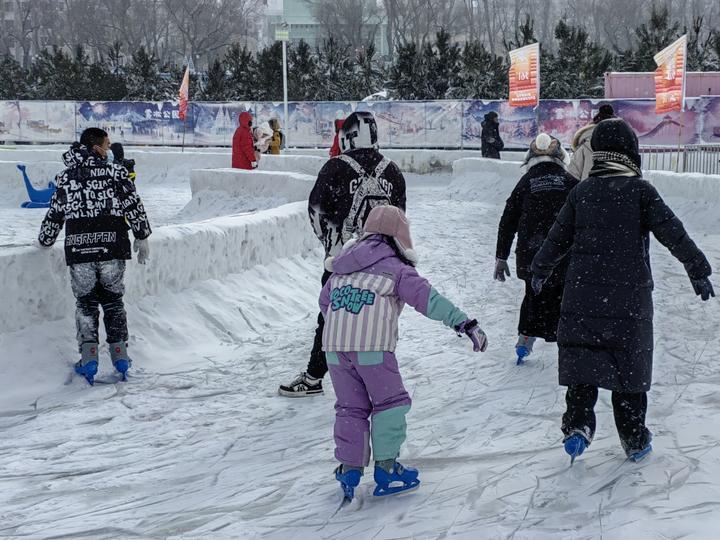 雪依然在下,阳光穿过雪花,在冰面上投下斑驳光影,防洪纪念塔周围响起《贝加尔湖》的旋律。这样的“尔滨”,既有冰雪的凛冽,也有阳光的温柔。在这里,冬天不是蛰伏的季节,而是人们释放活力的舞台。也许在每个“尔滨”人的世界,都有专属自己的冰雪故事。