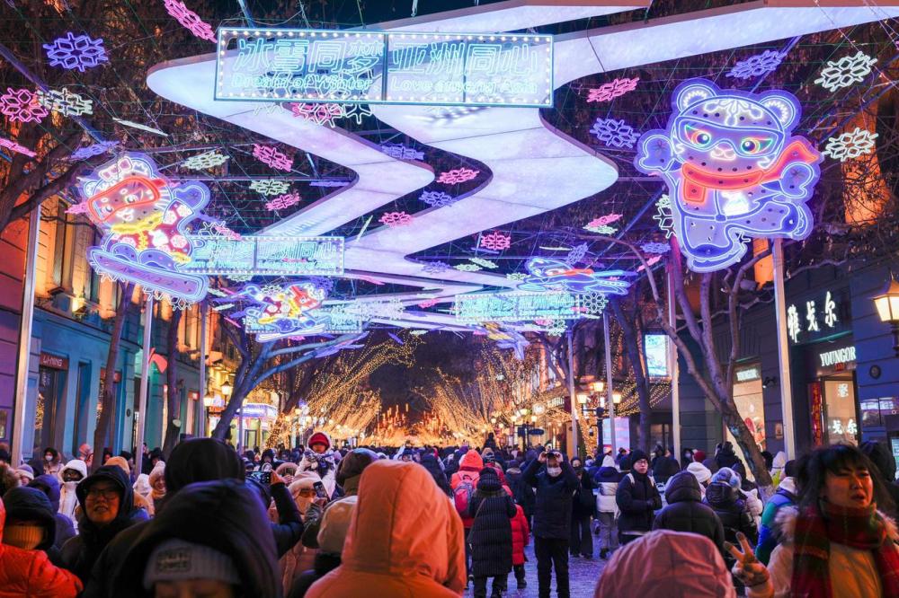 2月5日晚中央大街璀璨的灯光。岳冉冉 摄