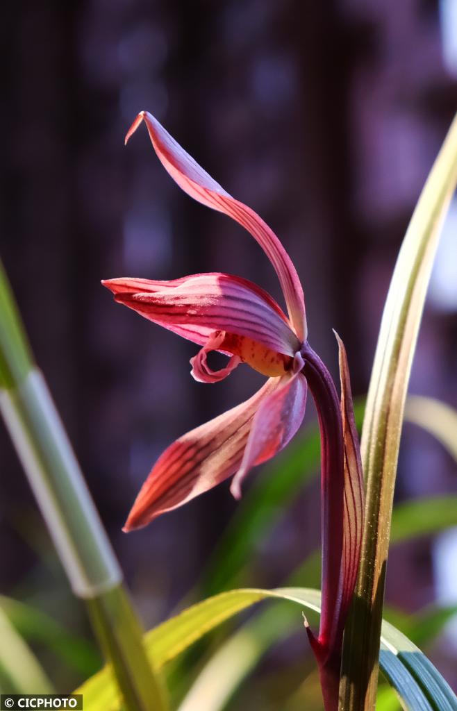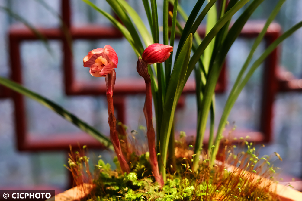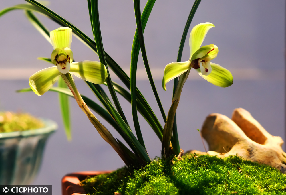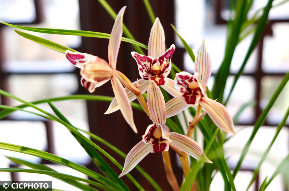 ↑2025年2月23日在苏州古典园林沧浪亭举办的春兰展上拍摄的兰花。CICPHOTO/王建中 摄