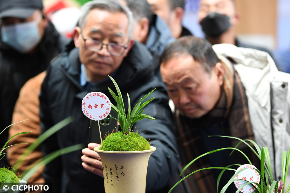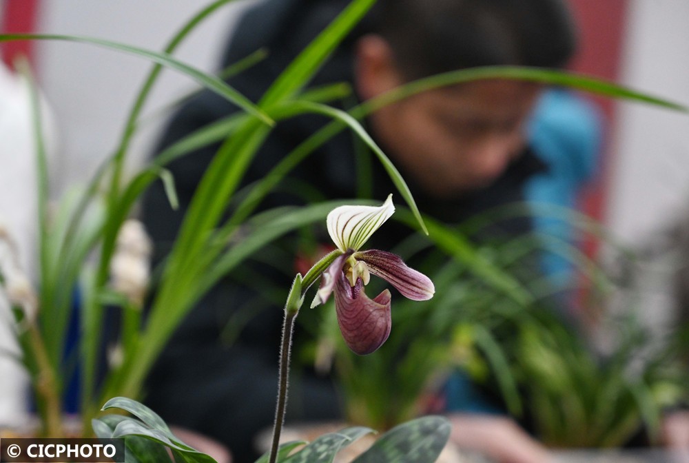 ↑2025年2月13日,兰花爱好者在浙江省湖州市长兴县龙山街道川步村兰花博览园举办的兰花展上赏花。CICPHOTO/陈海伟 摄