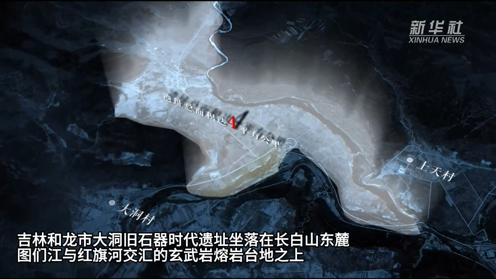 吉林和龙市大洞旧石器时代遗址坐落在长白山东麓,图们江与红旗河交汇的玄武岩熔岩台地之上,分布范围超过4平方公里,核心区面积约50万平方米,是目前东北亚规模最大的旧石器时代晚期旷野遗址。
