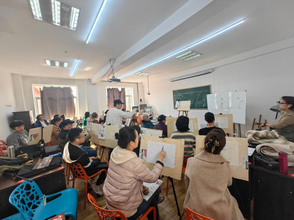 3月20日,老人们在大连沙河口区星海老年大学绘画班学习绘画。新华社记者 白涌泉 摄
