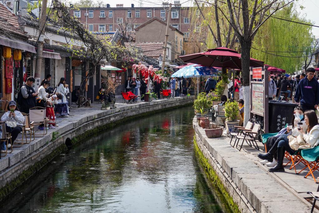 游人在济南曲水亭街游玩(2024年4月5日摄)。新华社记者 朱峥 摄