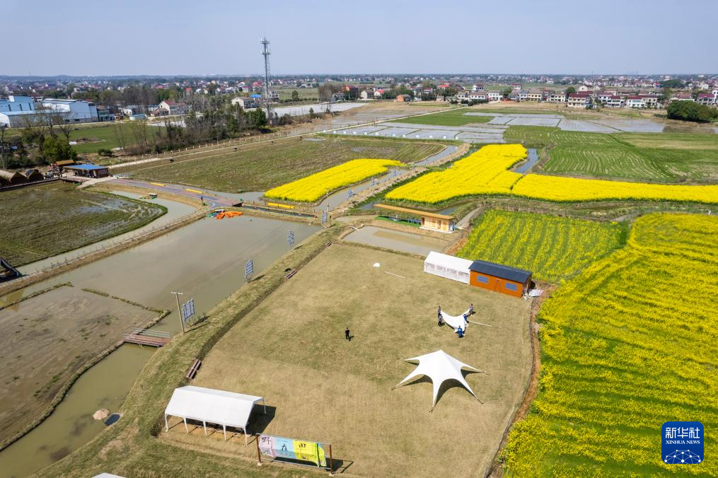 这是3月19日在益阳市资阳区新桥河镇廖河村拍摄的由姚帅及其团队打造的稻作公园(无人机照片)。新华社记者 周勉 摄