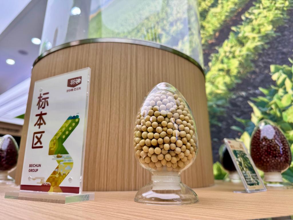 这是穆棱市北纯农业科技有限公司展出的黄豆。新华社记者刘赫垚 摄