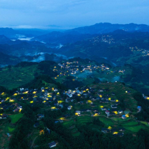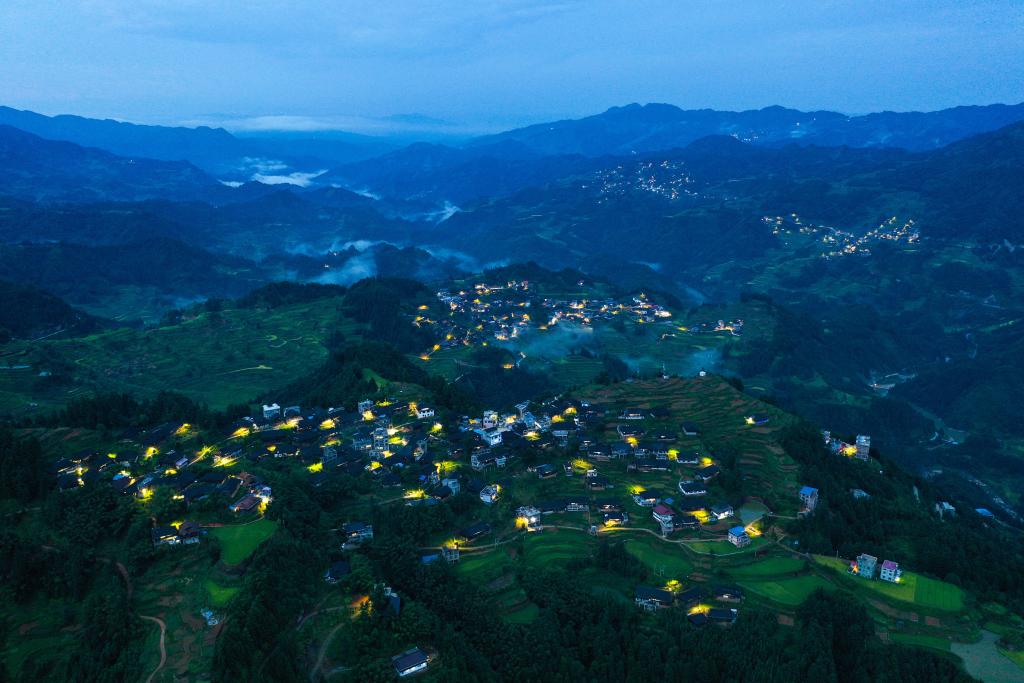这是广西融水苗族自治县杆洞乡杆洞村和百秀村的夜景(无人机照片,2021年11月28日摄)。新华社记者 黄孝邦 摄