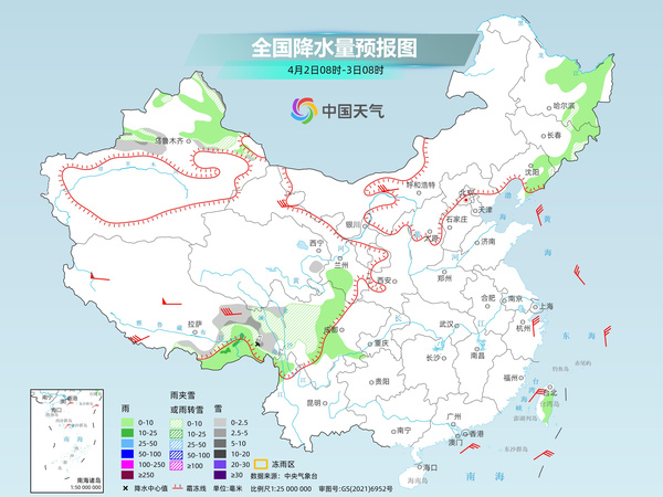 今起三天,我国降水范围将逐渐缩减,持续阴雨的江南、华南多地有望放晴,阳光逐渐上线。其中今天,新疆沿天山地区和伊犁河谷高海拔地区、青海南部、西藏东部、川西高原、内蒙古东部、河北北部、黑龙江中部、吉林中东部等地部分地区有小雪或雨夹雪,其中,新疆伊犁河谷高海拔地区、西藏东北部、青海东南部、川西高原北部等地部分地区有中到大雪,西藏东北部、川西高原北部等地局地有暴雪。新疆北疆北部、西藏东南部、四川盆地西部和中部、重庆南部、贵州西部、云南南部和东北部、内蒙古东部、辽宁南部和东部、吉林西部、黑龙江中部和东北部、海南岛南部、台湾岛等地部分地区有小到中雨。