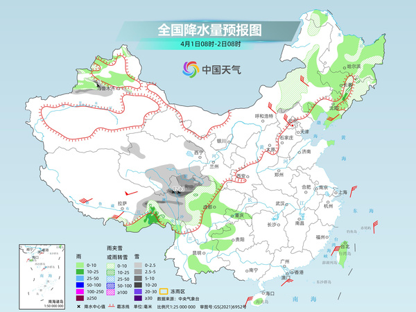 明天,新疆北疆东部和沿天山地区以及伊犁河谷高海拔地区、西藏东部、川西高原中部等地部分地区有小到中雪或雨夹雪,其中,西藏东部局地有大雪。新疆北疆中东部、西藏东南部、四川盆地西部、甘肃西南部、东北地区东部、台湾岛中东部等地部分地区有小到中雨。